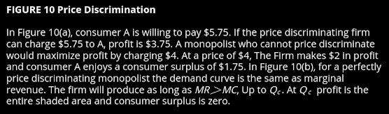 So far in our discussion of monopoly we have assumed that the firm faces a known downward-sloping demand curve and must choose a single price and a single quantity of output. Indeed, the reason that price and marginal revenue are different for a monopoly and the same for a perfectly competitive firm is that if a monopoly decides to sell more output, it must lower price in order to do so. In the world, however, there are lots of examples of firms that charge different prices to different groups of buyers. Charging different prices to different buyers is called price discrimination. The motivation for price discrimination is fairly obvious: If a firm can identify those who are willing to pay a higher price for a good, it can earn more profit from them by charging a higher price. The idea is best Illustrated using the extreme case where a firm knows what each buyer is willing to pay. A firm that charges the maximum amount that buyers are willing to pay for each unit is practicing perfect price discrimination. Examples of Price Discrimination Examples of price discrimination are all around us. Airlines routinely charge those who stay over Saturday nights a much lower fair than those who do not. Business travelers generally travel during the week, often are unwilling to stay over Saturdays, and generally are willing to pay more for tickets. Airlines, movie theaters, hotels, and many other industries routinely charge a lower price for children and the elderly. This is because children and the elderly generally have a lower willingness-to-pay. Telephone companies have so many ways of getting at different groups that it is difficult to know what they are really charging! In each case, the objective of the firm is to segment the market in two different identifiable groups, with each group having a different elasticity of demand. It can be shown, although we will not present the analysis here, that the optimal strategy for a firm that can sell in more than one market is to charge higher prices in markets with low demand elasticities [Elasticity of demand refers to the degree in the change in demand when there is a change in another economic factor, such as price or income. If demand for a good or service remains unchanged even when the price changes, demand is said to be inelastic (investopdia.com)]. *CASE & FAIR, 2004, PRINCIPLES OF ECONOMICS, 7TH ED., PP. 268-269* end |