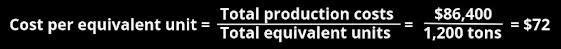 Step 1: Determine the Units to be Assigned Costs The first step in our illustration is to determine the units to be assigned costs. A unit can be any measure of completed production, such as tons, gallons, pounds, barrels, or cases. We use tons as the definition for units in Gemini Steel. Gemini Steel's Melting Department had 1,500 tons of direct materials to account for during July, as shown here: There are two categories of units to be assigned costs for the periods: (1) units completed and transferred out and (2) units in the ending work in process inventory. During July, the Melting Department completed and transferred 1,100 tons to the Casting Department. Of the 1,000 tons started in July, 600 tons were completed and transferred to the Casting Department. Thus, the ending work in process inventory consists of 400 tons. Note that the total units (tons) to be assigned costs (1,500 tons) equals the total units to account for (1,500 tons). Step 2: Calculate Equivalent Units of Production Gemini Steel has 400 tons of whole units in the work in process inventory for the Melting Department on July 31. Since these units are 25% complete, the number of equivalent units in process in the Melting Department on July 31 is 100 tons (400 tons * 0.25). Since the units transferred to the Casting Department have been completed, the whole units (1,100 tons) transferred are the same as the equivalent units transferred. The total equivalent units of production for the melting department is determined by adding the equivalent units and the ending work in process inventory to the units transferred and completed during the period as shown here: Step 3: Determine the Cost per Equivalent Unit Materials and conversion costs are often combined in computing cost per equivalent unit under the average cost method. In doing so, the cost per equivalent unit is determined by dividing the total production costs by the total equivalent units of production as follows: We use the cost per equivalent unit in Step 4 to allocate the production costs to the completed and partially completed units. Step 4: Allocate Costs to Transferred and Partially Completed Units In Step 4, we multiply the cost per equivalent unit by the equivalent units of production to determine the cost of transferred and partially completed units. For the Melting Department, these costs are determined as shown: The Cost of Production Report The July cost of production reports for Gemini Steel's Mining Department is shown in Exhibit 11. The cost of production report in Exhibit 11 summarizes the following: