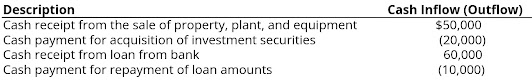 Reporting Cash Flows from Investing and Financing Activities As discussed in previous posts, the statement of cash flows also includes a section showing the cash flows related to investing activities and a section showing the cash flows related to financing activities. Cash flows from investing activities relate to the acquisition and disposition of productive property, investments in debt and equity securities, and making and collecting loans. Financing activities involve the cash receipts and payments from debt and equity financing. EXAMPLE 6A.3 Investing and Financing Activities PROBLEM: Consider Aries Endoscope, Inc. from Example 68.2 in Part 83. In addition to the information presented in that example, Aries also received and paid the following amounts: Aries Endoscope had a beginning cash balance of $120,000 and an ending cash balance of $402,090. Prepare the statement of cash flows (using the direct method for the operating activities section) for Aries Endoscope, Inc. SOLUTION: We have already prepared the operating section of the cash flow statement in Part 83 and reintroduced above. We include the cash receipt from the sale of property, plant, and equipment and the cash payment for the acquisition of investment securities in the investing activities section. We include all cash transactions related to the loans in the financing activities section. Aries Endoscope statement of cash flows is as follows: *GORDON, RAEDY, SANNELLA, 2019, INTERMEDIATE ACCOUNTING,2ND ED. PP. 306-307* end |